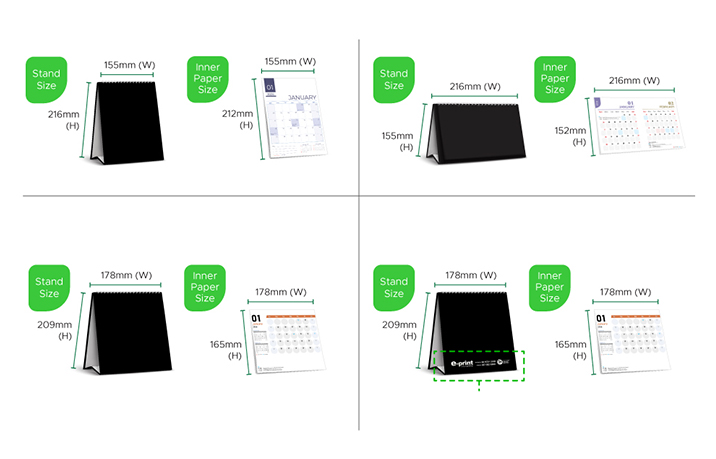 Size (Height x Width) | Stand Size | 216mm (H) x 155mm (W) | 155mm (H) x 216mm (W) | 209mm (H) x 178mm (W) | 209mm (H) x 178mm (W) |